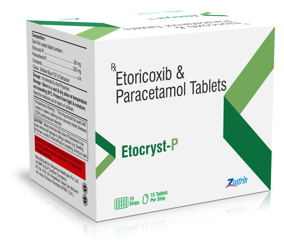 Etoricoxib and Paracetamol Tablets are used together to manage pain and inflammation, especially in conditions like arthritis, musculoskeletal pain, or acute pain from injury or surgery. This combination offers both anti-inflammatory effects (from Etoricoxib) and pain relief (from Paracetamol), providing more comprehensive pain management.